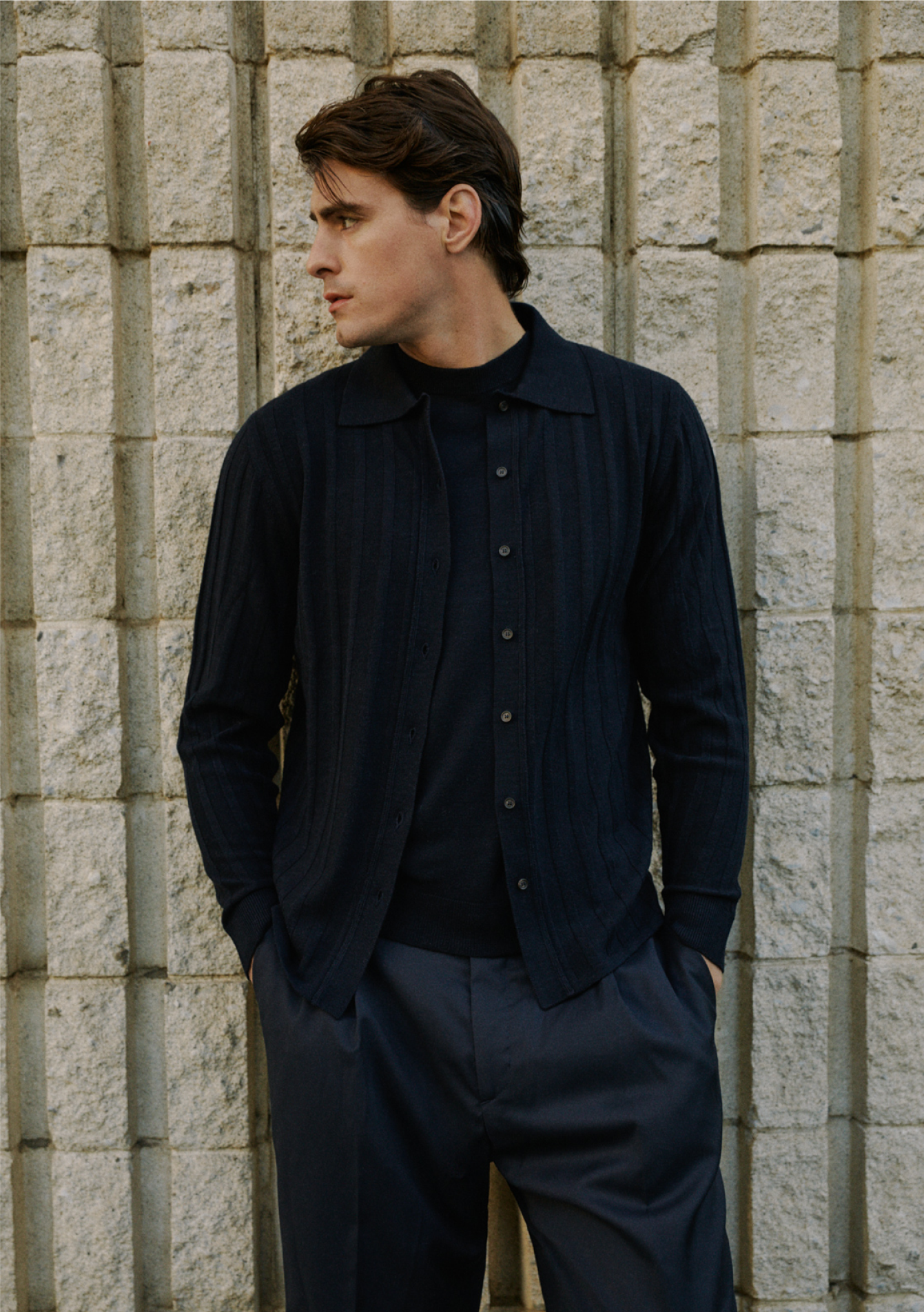 The Merino Wool Ribbed PoloEXTRAFINE MERINO WOOL