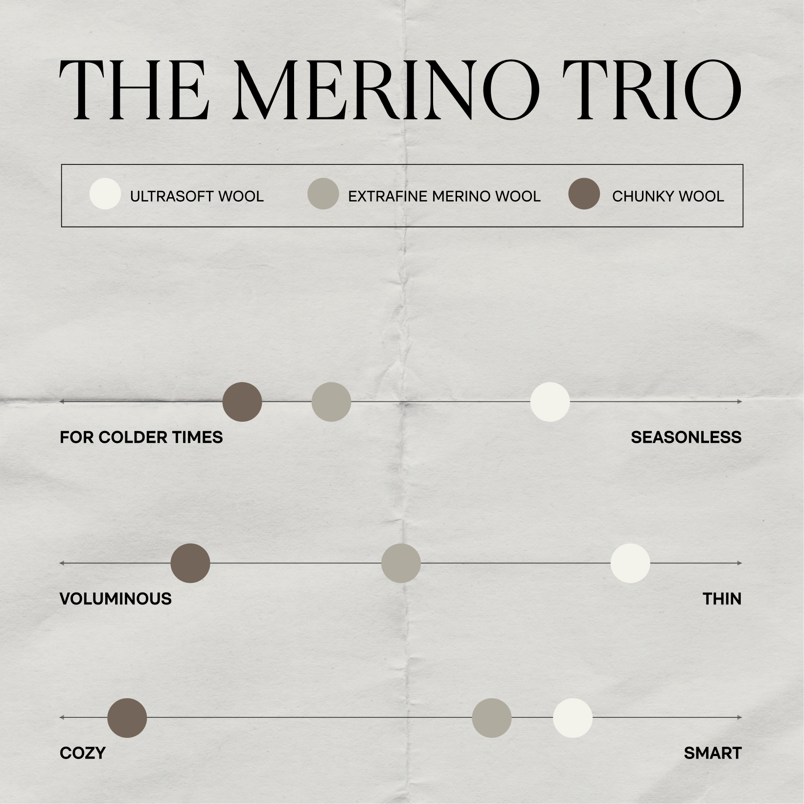 Die Superweiche Wolle ist dank der nur 17,5 Mikrometer dicken, feinen Fasern ein dünnes und leichtes Garn. Sie fühlt sich ähnlich an wie Kaschmir und ist so fein, dass wir mit diesem Garn auch T-Shirts und Oberteile herstellen, die sich direkt auf der Haut tragen lassen. Es handelt sich um mercerisierte Wolle: Die Schuppen auf den Fasern werden entfernt, um ein noch glatteres, volleres und glänzenderes Material zu erhalten. So bekommen die fertigen Stücke eine besonders formelle Note. Durch einlagige Garne fallen die fertigen Kleidungsstücke besonders leicht aus und sind perfekt zum Unterziehen. Bei zweilagigen Garnen hingegen fällt die Textur üppiger aus, aber das fertige Kleidungsstück bleibt immer noch dünn.