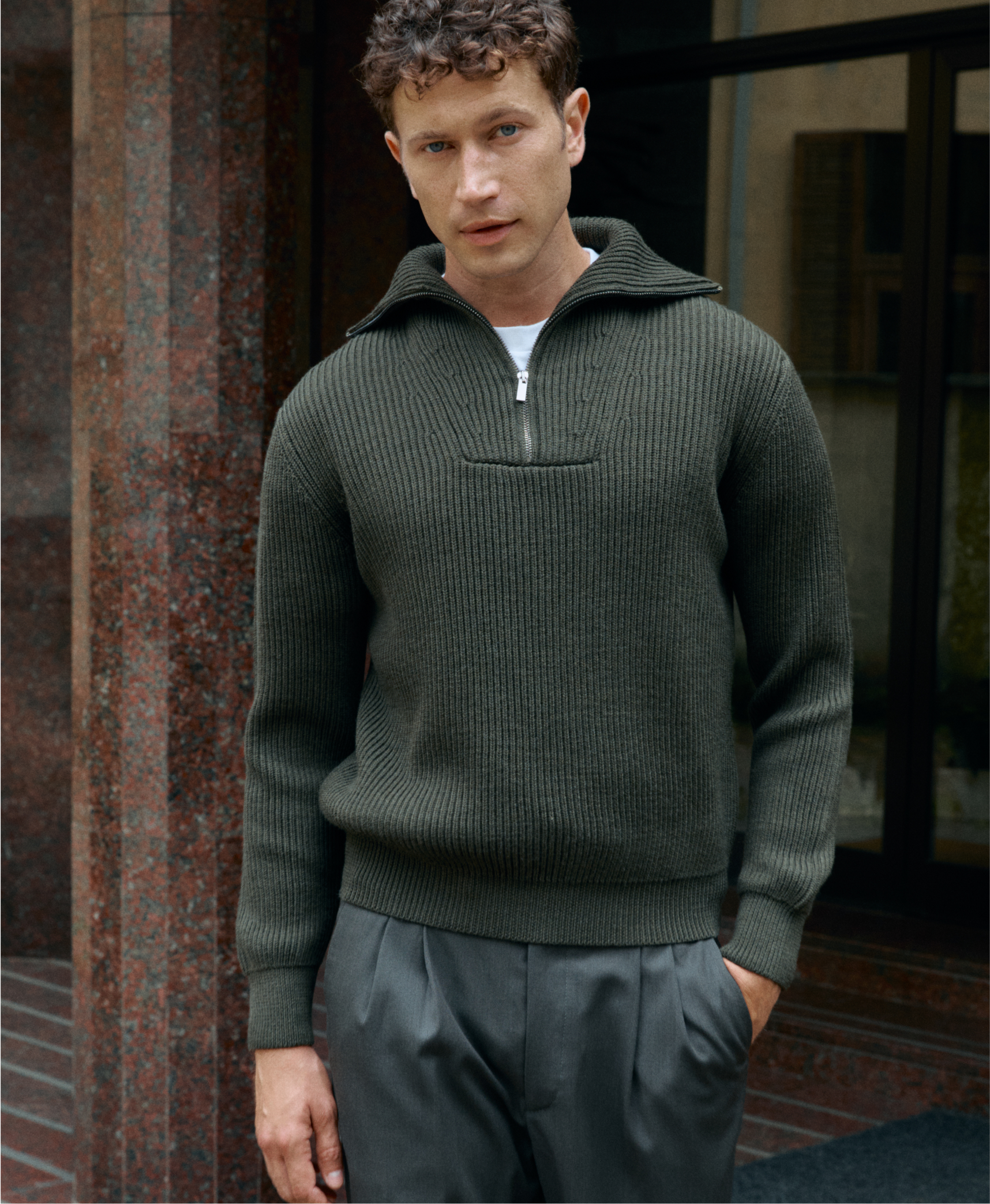 Pullover aus Merinowolle mit Polokragen und Halbem ReißverschlussEXTRAFINE MERINO WOOL