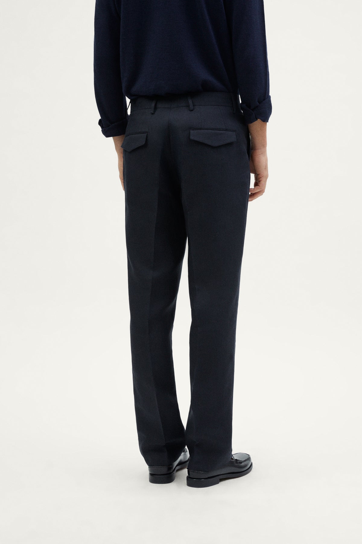- Paspeltasche mit dreieckiger Patte auf der Rückseite