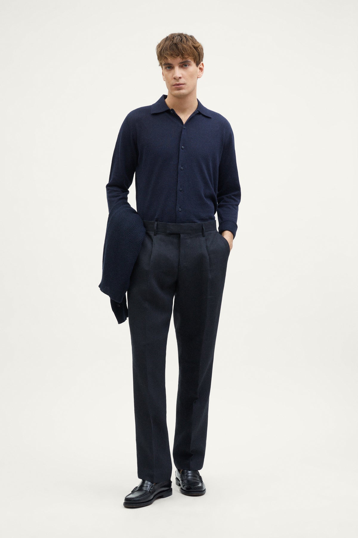 Waschen Sie Ihr Strickstück mit der Hand, nicht länger als zehn Minuten und bei einer Höchsttemperatur von 40°, drehen Sie es auf links und verwenden Sie ein mildes Waschmittel. Nicht bleichen.