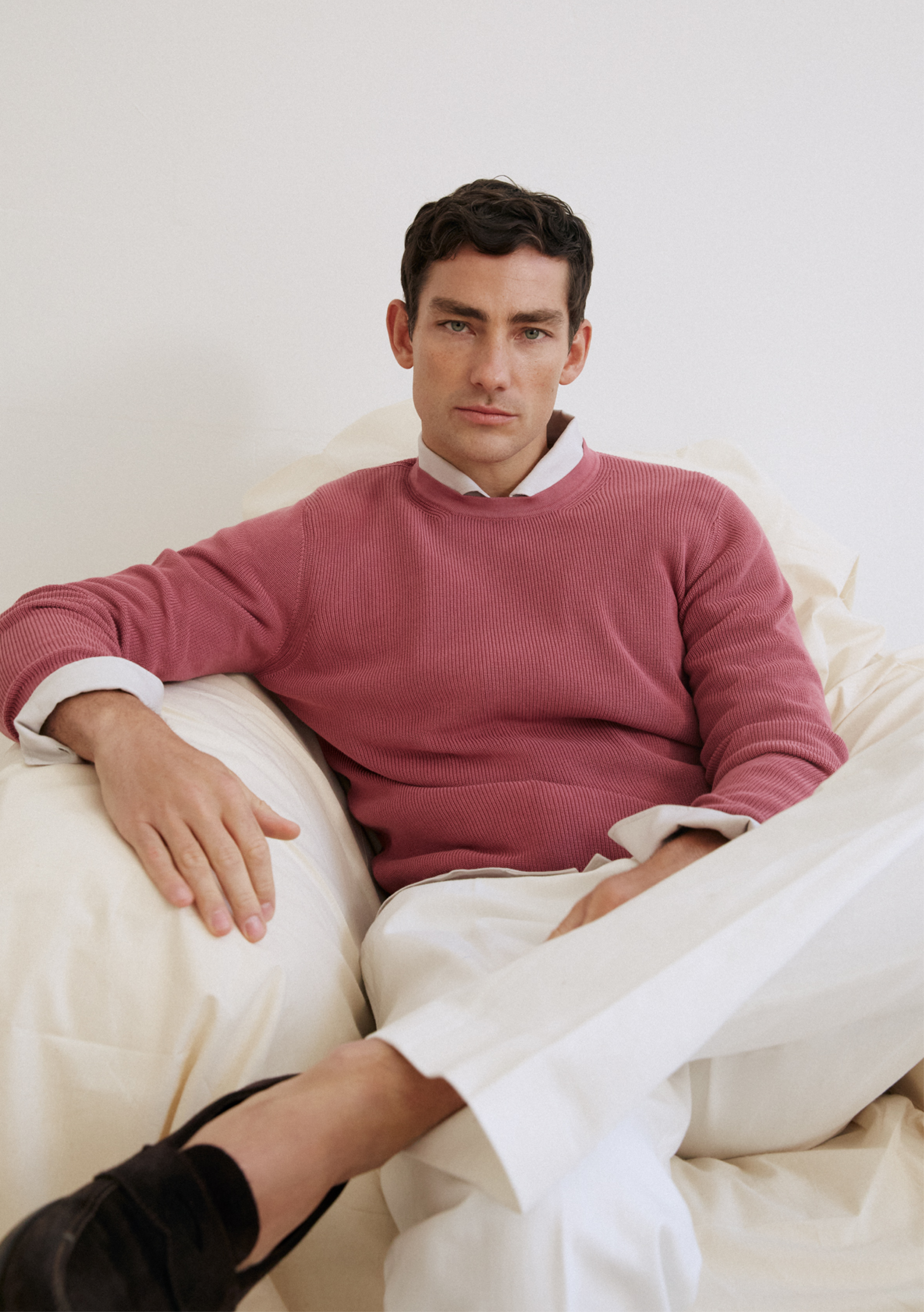 Waschen Sie Ihr Strickstück mit der Hand, nicht länger als zehn Minuten und bei einer Höchsttemperatur von 40°, drehen Sie es auf links und verwenden Sie ein mildes Waschmittel. Nicht bleichen.