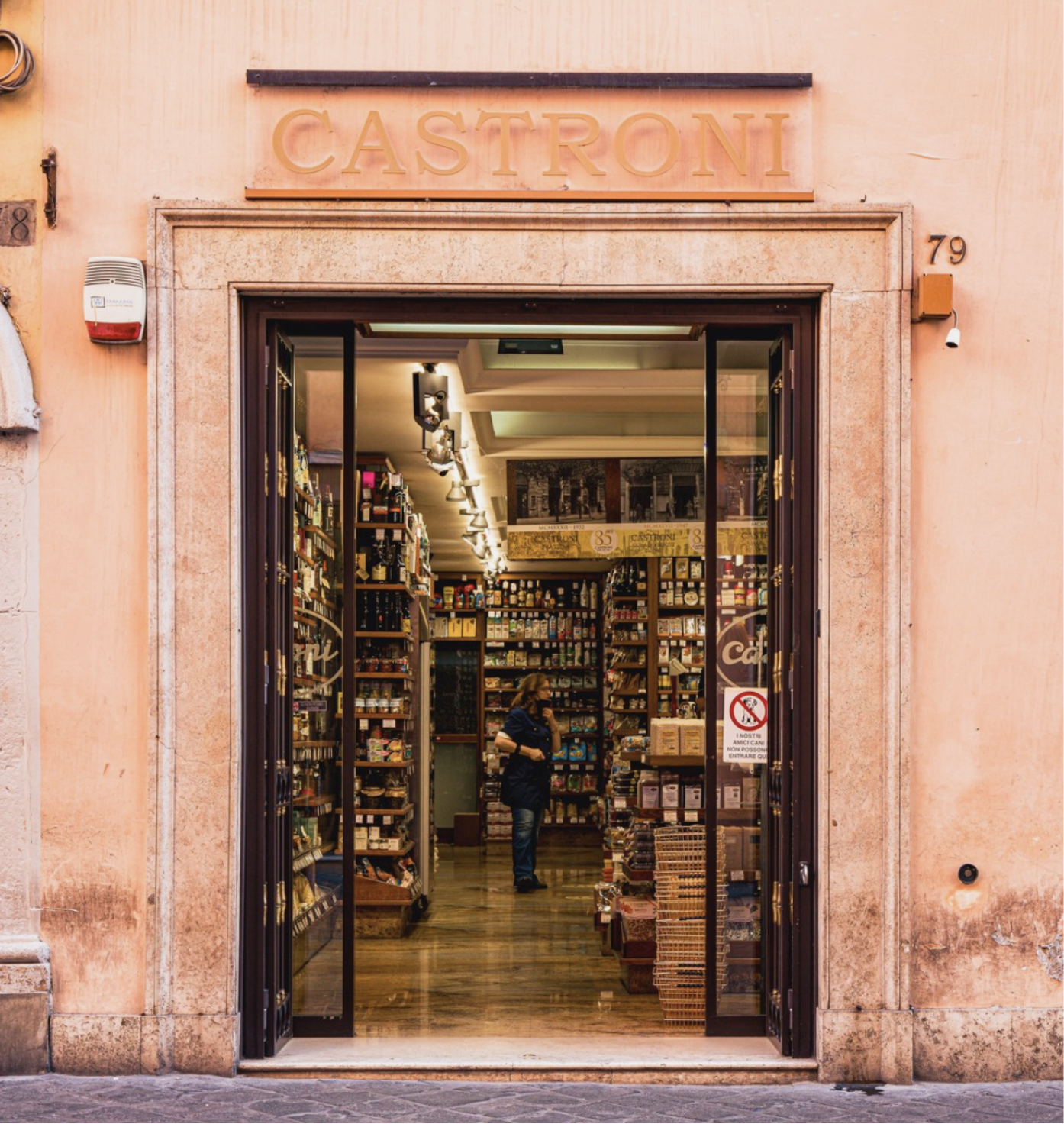 Castroni est une épicerie fine romaine historique, connue pour son café raffiné, ses spécialités italiennes et ses produits gastronomiques du monde entier. Une destination appréciée où la tradition et les saveurs du monde se rencontrent, remplissant les rayons d'arômes, d'épices et de trésors culinaires.
