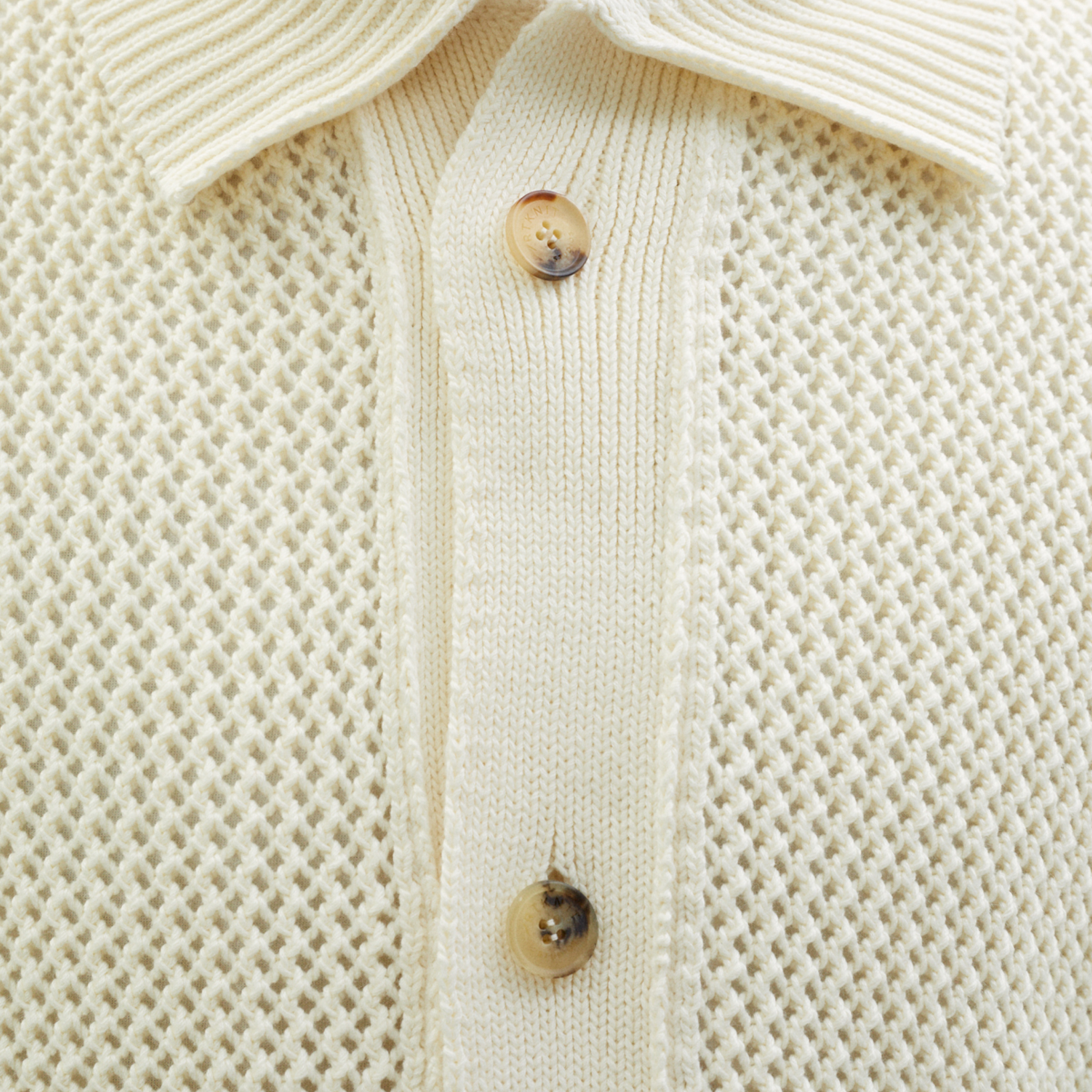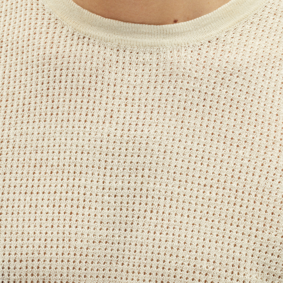 Une maille ajourée qui apporte une touche de fraîcheur et un effet crochet à nos toutes dernières pièces pour hommes, parfaites pour les journées ensoleillées.