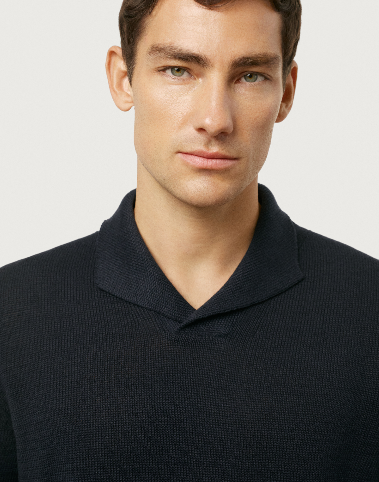 Le Polo à col châle en Coton et LinLINEN COTTON