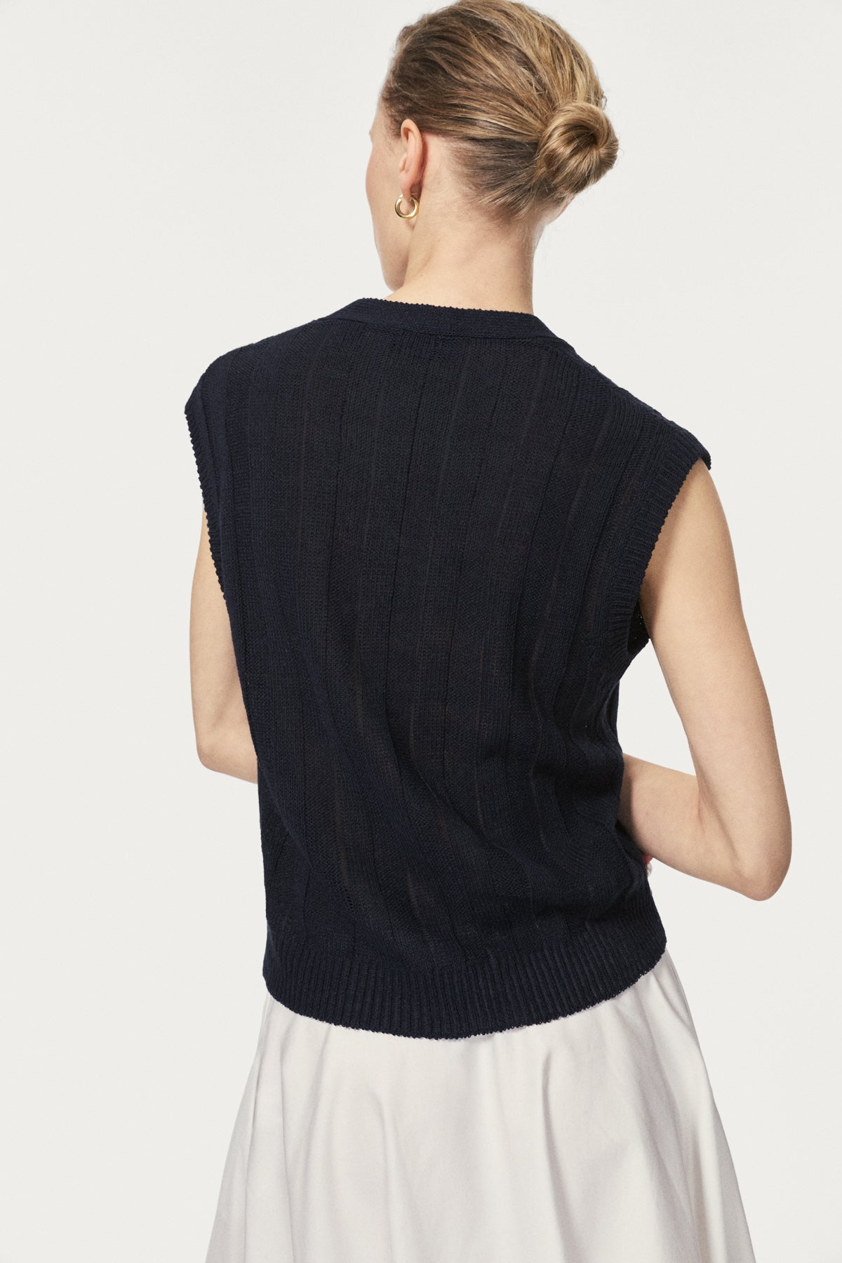 Rangez votre tricot dans un sac en tissu contenant un antimite naturel et ne le suspendez pas pour éviter qu'il ne perde sa forme.