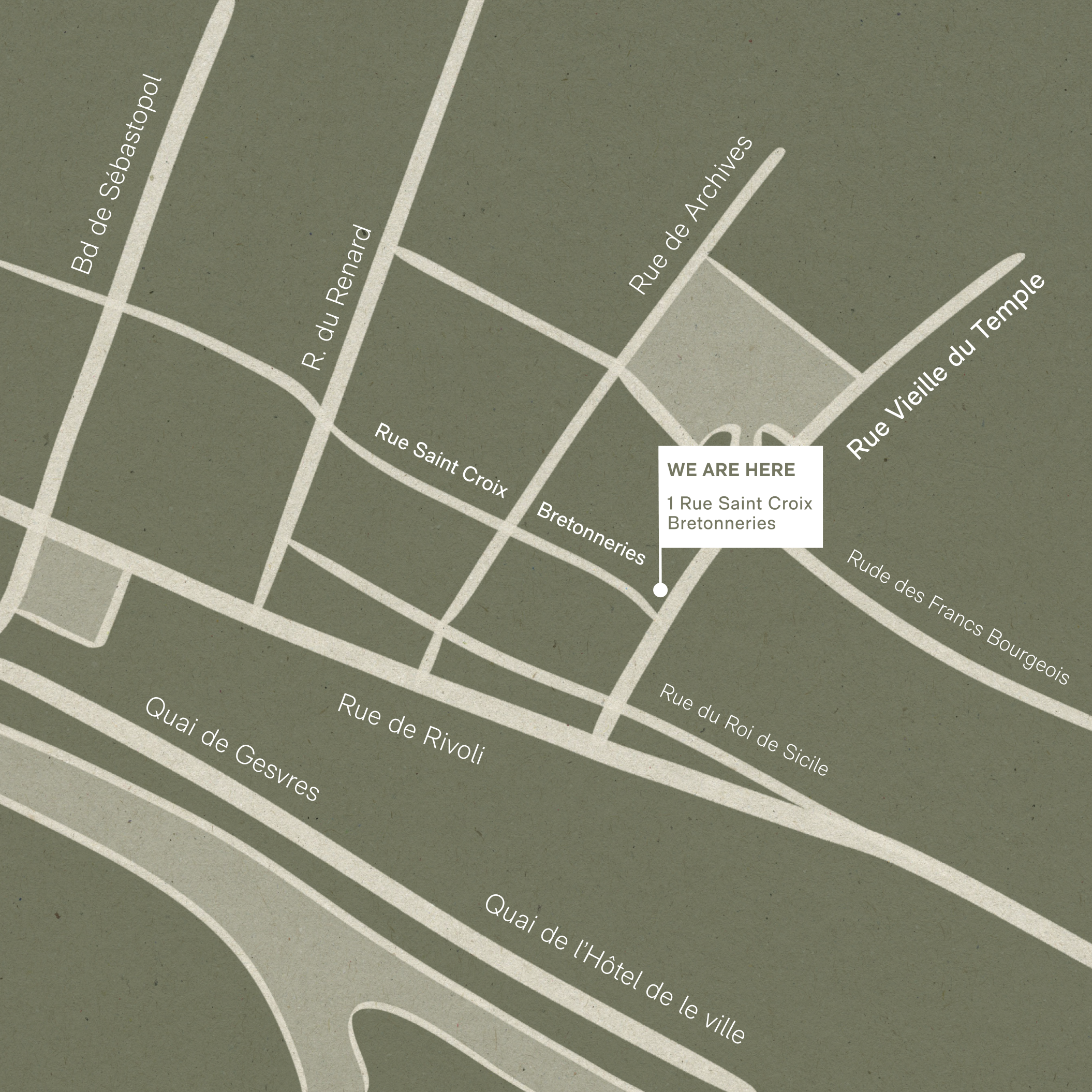 Surrounded by craft boutiques, art galleries, curated bookstores, and historic cafés, Le Marais captures the most authentic and vibrant spirit of Paris. Its cobblestone streets reveal a dynamic, creative soul, just steps away from iconic landmarks like Place des Vosges and the Centre Pompidou. The store is easily reachable by Metro Line 1 or 11 (Hôtel de Ville station).